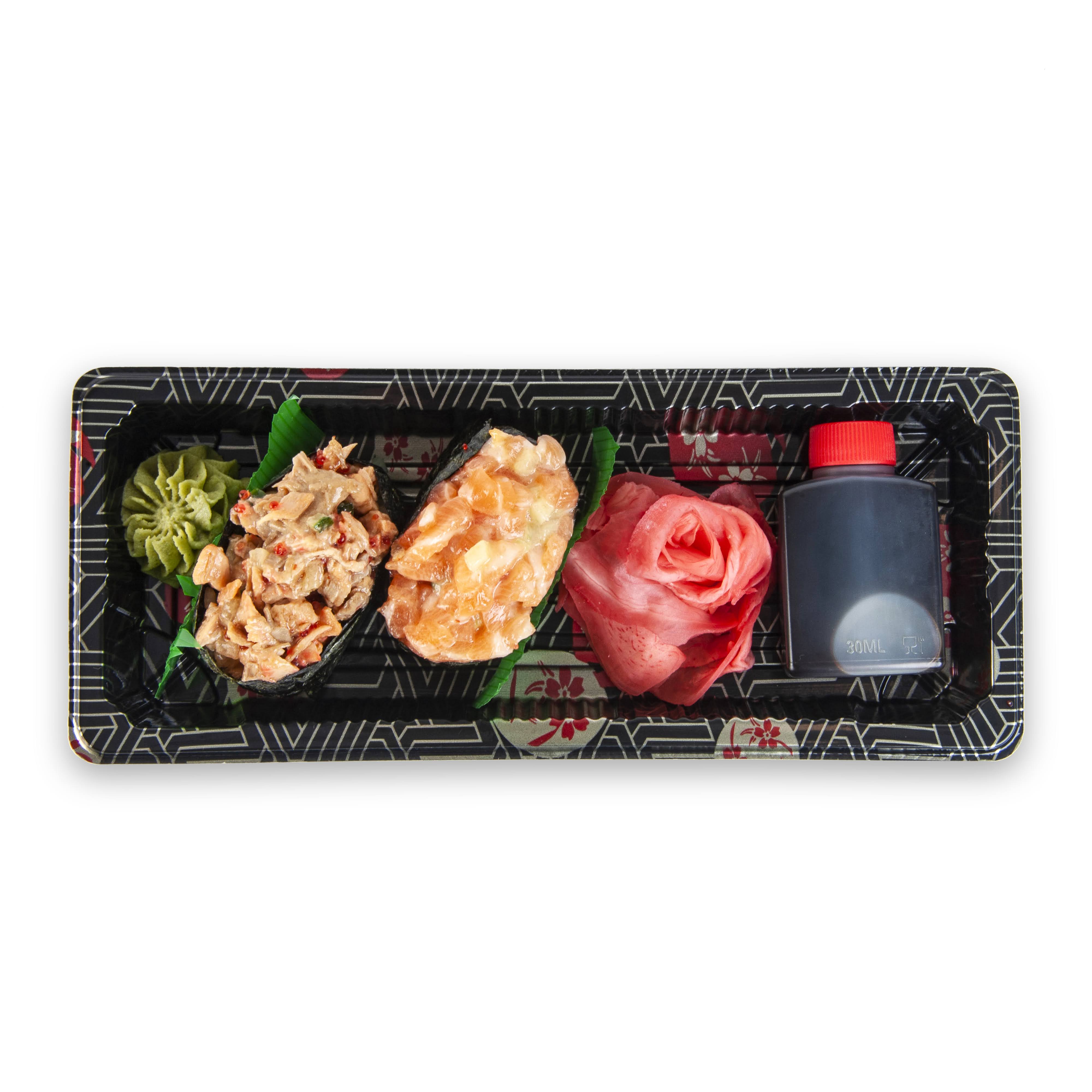 Prețul include 1 sos de soia (30 ml), 1 porție de ghimbir și 1 porție de wasabi