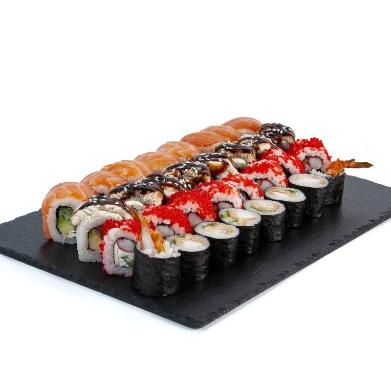 Apa, orez , Somon, Cremette, Anghila una gi , Ghimbir Murat, Wasabi, icre tob iko, Sos de soia, Avocado, Castraveti, Creveti, otet de Orez, Surimi, Zahar, Faina Tempura, Portocale, Sare, Foi Nori, AMELIORATOR PENTRU OREZ, Alge kombu, Ghimbir, Lămâie.