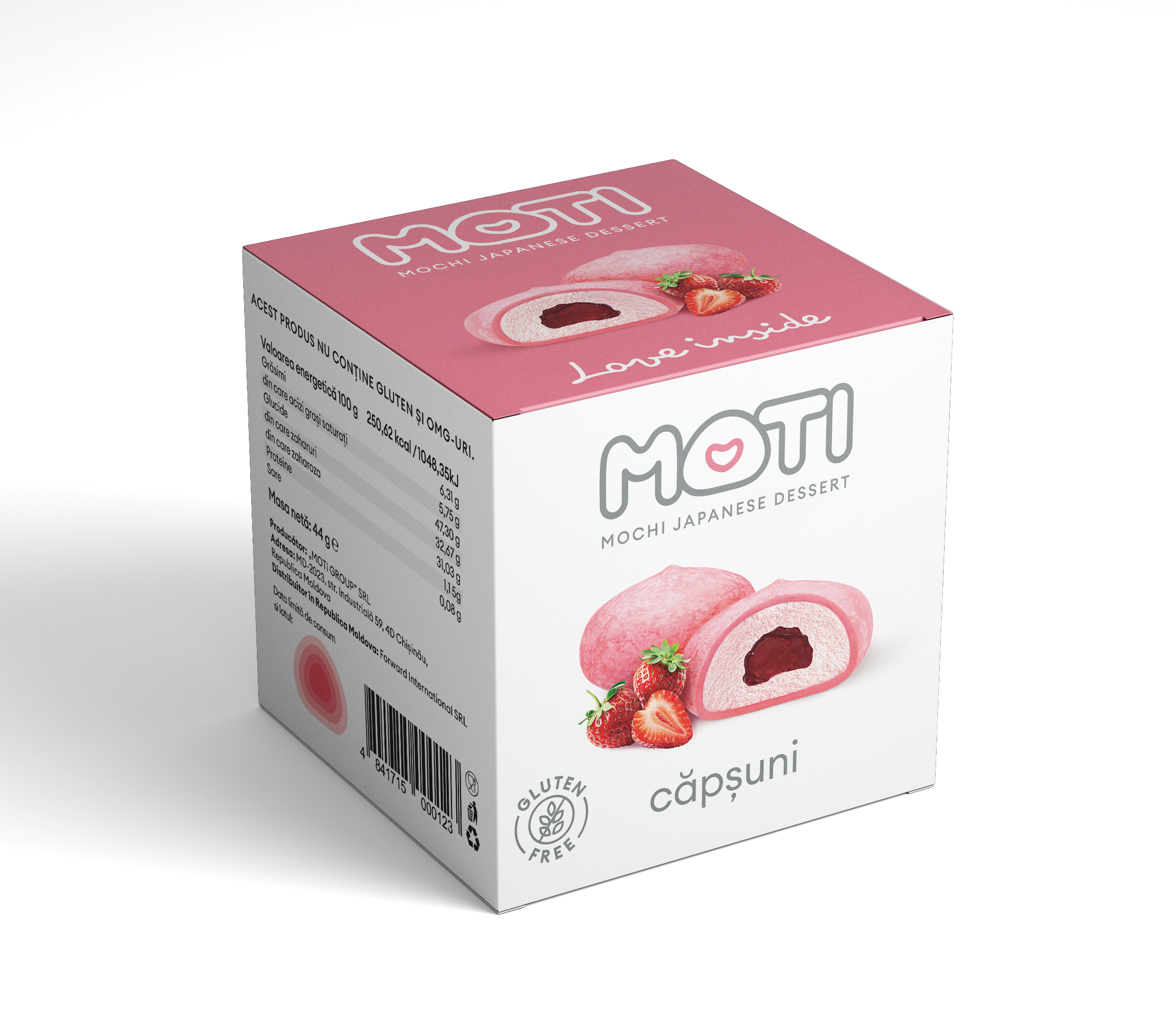 Ingrediente: Aluat: făină de orez, zahăr, apă, colorant alimentar (E129), (E127), (E110), (E102). Umplutură cu gust de căpșună (38%): frișcă vegetală (apă, grăsime vegetală complet hidrogenată 25% (miez de palmier), zahăr (21%), emulgatori (E435, E491, lecitină de soia, E481, E471), stabilizatori (E464, E466, E331iii, E339ii, E412, E407), arome și coloranți (E160a), zahăr, pastă de căpșuni (6%), dextroză, sirop de glucoză, emulgatori (E471 mono și digliceride ale acizilor grași, E477 esteri propan-1,2-diol ai acizilor grași), agenți de îngroșare (gumă de fasole E410, gumă de guar E412, carboximetilceluloză E466, pectină), arome naturale, corectori de aciditate (acid citric, suc concentrat de căpșuni). Topping de căpșuni (12%): căpșune, zahăr, amidon modificat, agent de îngroșare (pectină), corector de aciditate (acid citric).