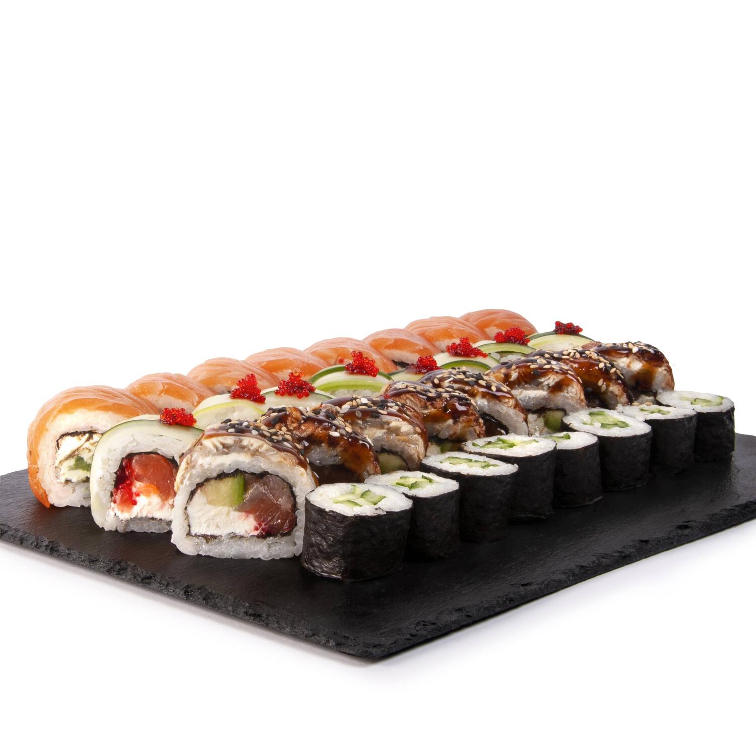 Orez , Somon, Cremette , Castraveti, Avocado, Otet din orez, icre tobiko , Zahar, Unagi sos, susan, Portocale , Lamale, AMELIORATOR PENIRU OREZ, ALge kombu, Ghimbir, sare, Nori, Ghimbir murat, Sos de soia, Apa, Wasabi, Zahar, Sare